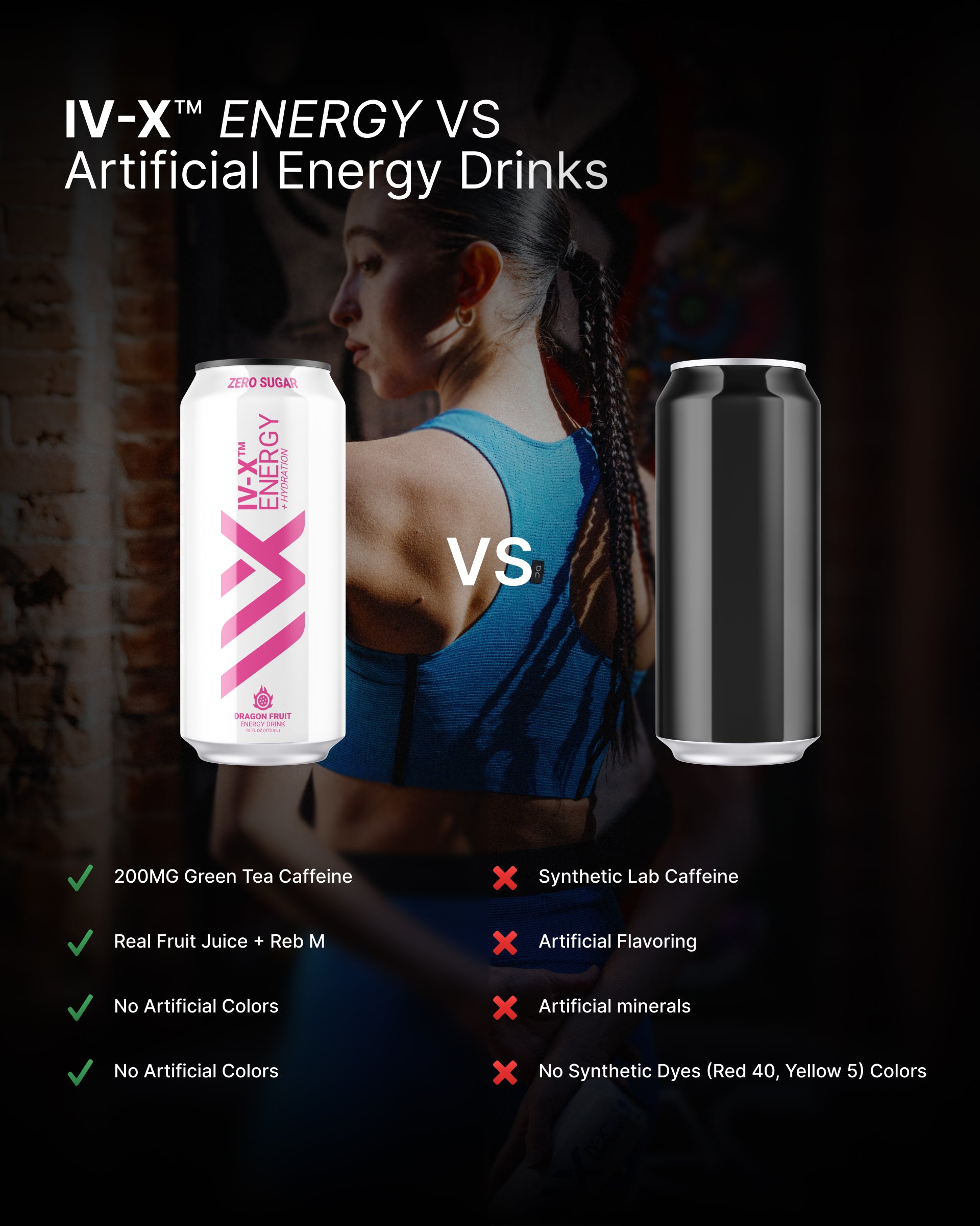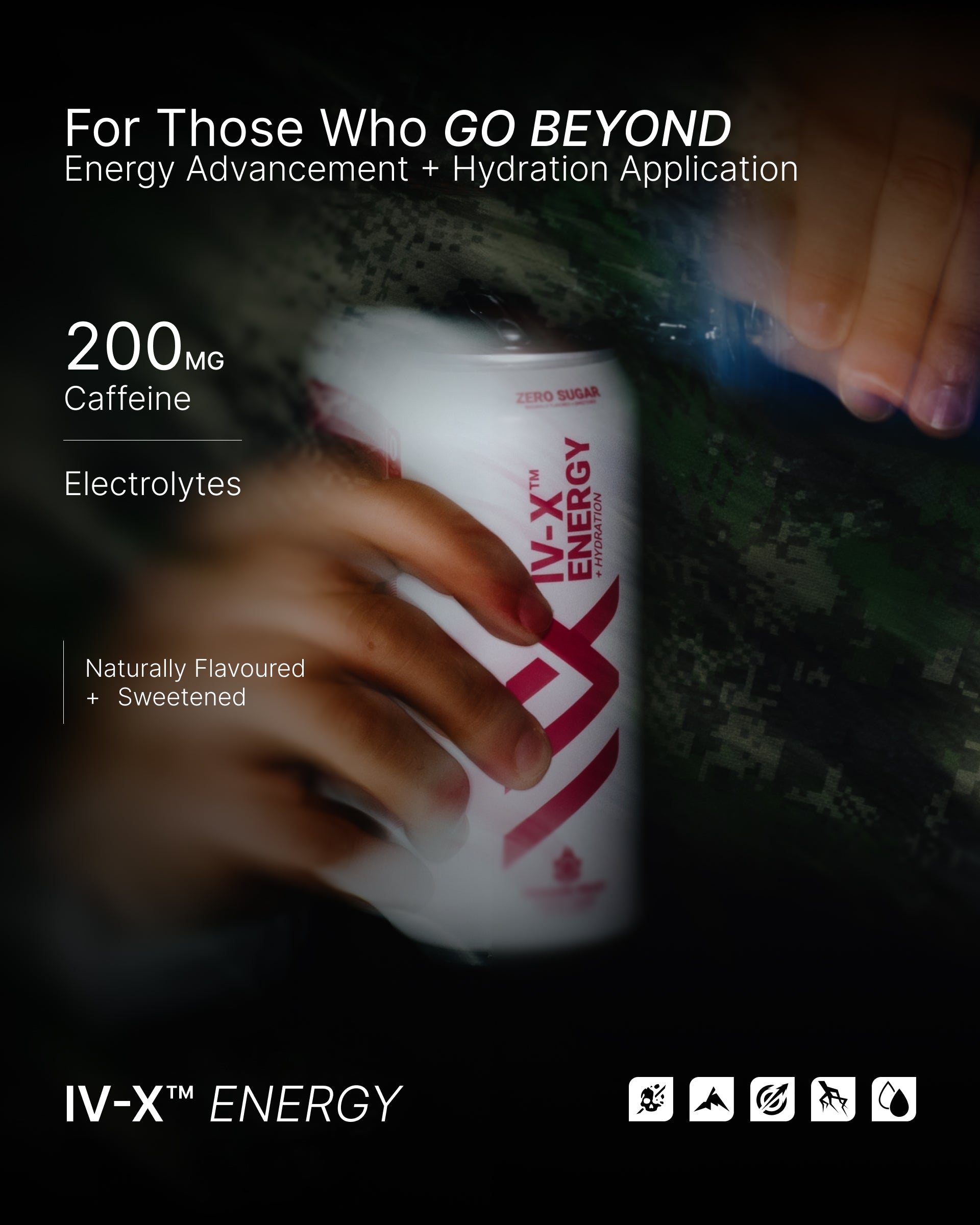Each can contains a measured dose of natural caffeine designed for performance — not overstimulation. IV-X delivers smooth activation without the spike-and-crash effect.