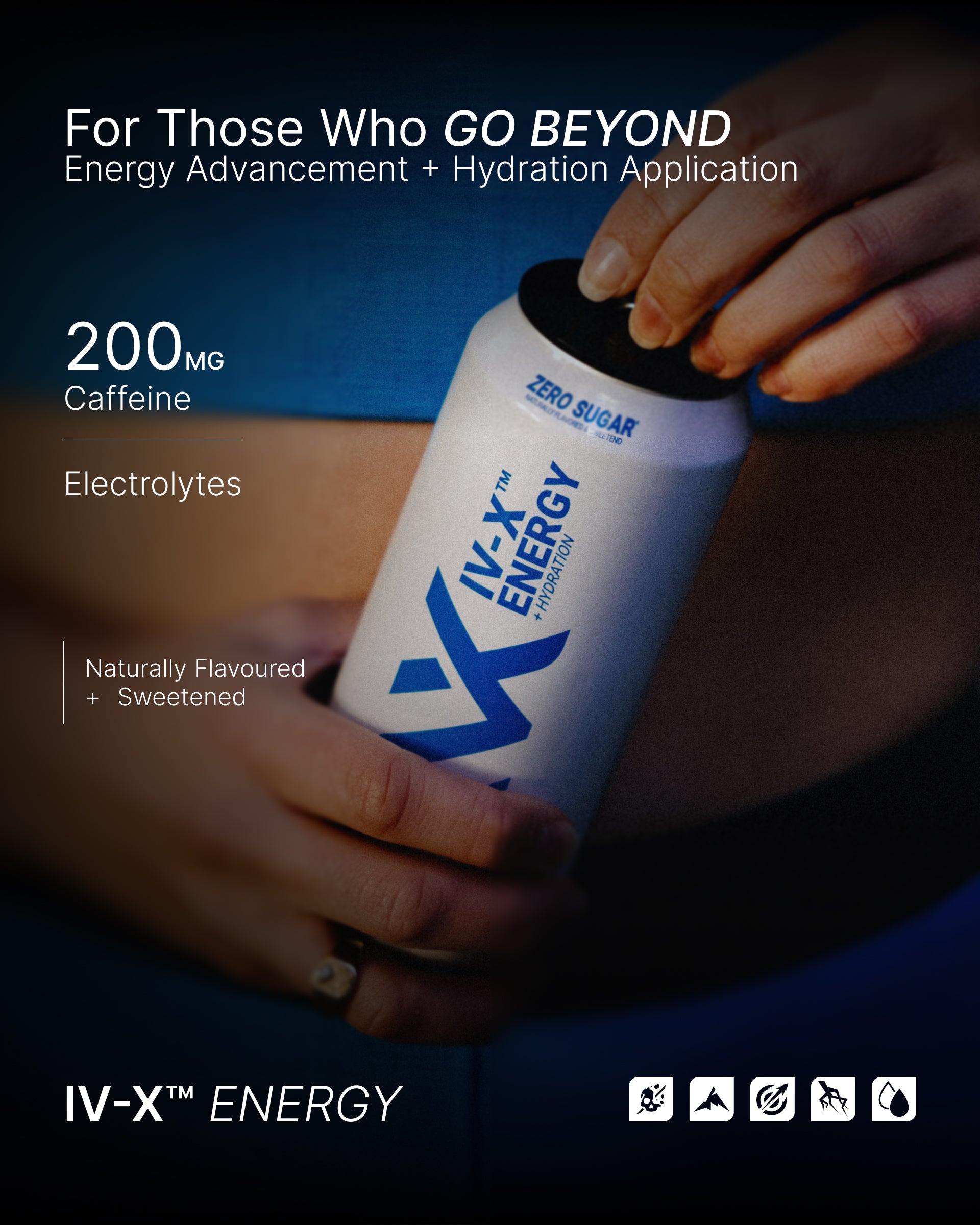 IV-X is engineered for training and performance. Non-carbonation prevents bloating, stomach pressure, and disrupted breathing — making it easier to drink before or during effort.