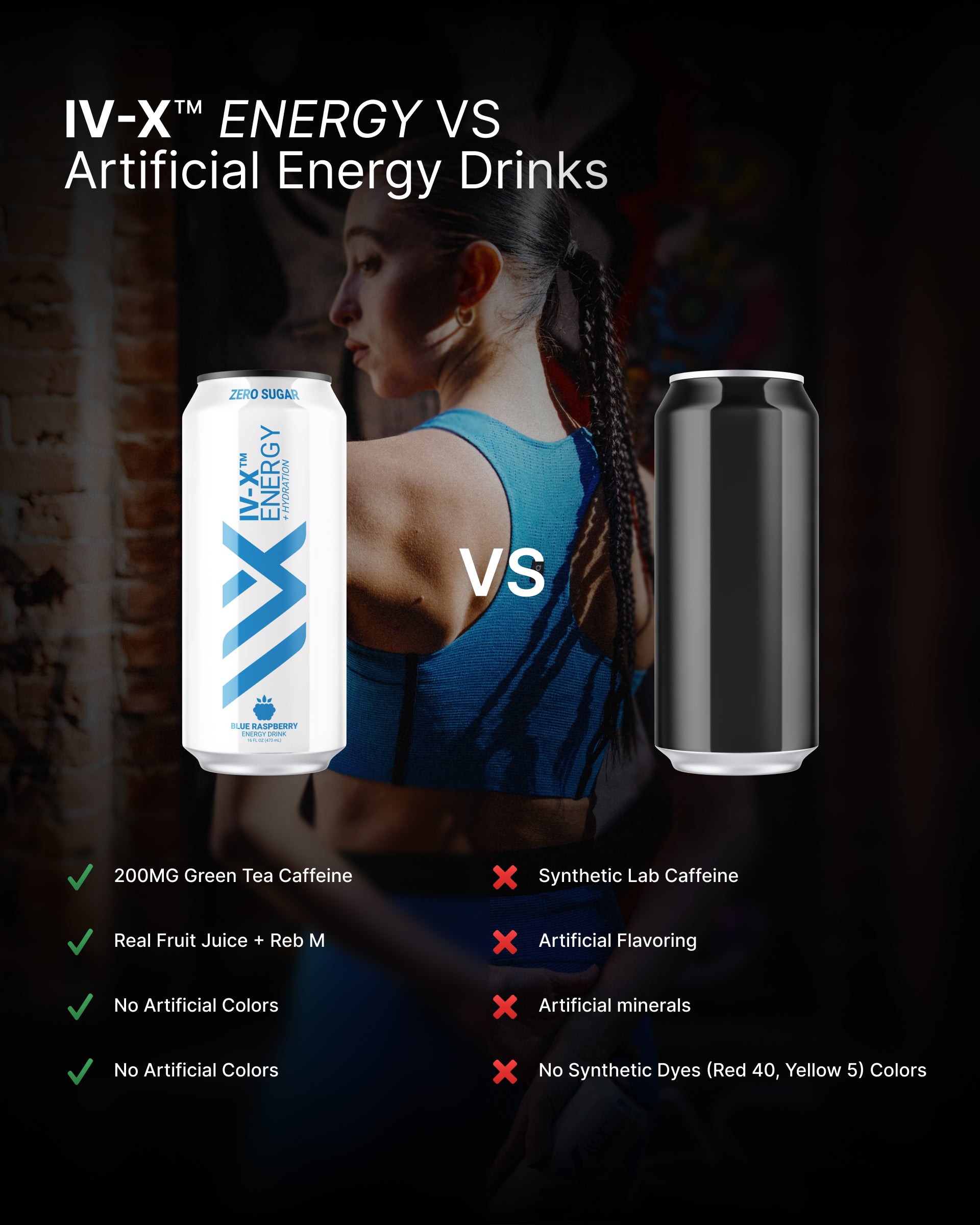 Each can contains a measured dose of natural caffeine designed for performance — not overstimulation. IV-X delivers smooth activation without the spike-and-crash effect.